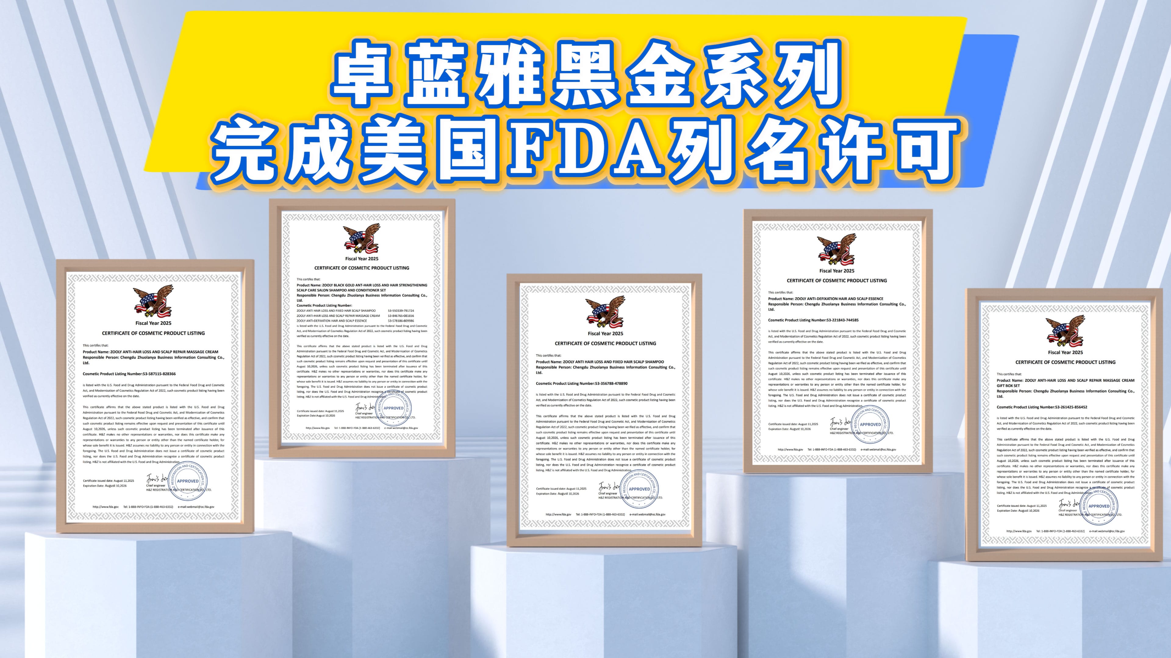 近期,卓蓝雅旗下黑金系列产品成功完成美国FDA列名许可。 美国食品药品监督管理局(FDA)直属美国联邦政府,由国会授权,是全球